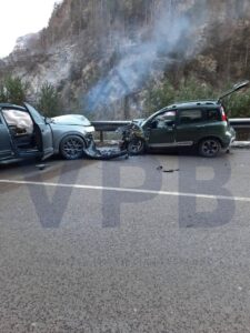 In coda dalla tangenziale di Agordo poco dopo il Palaluxottica