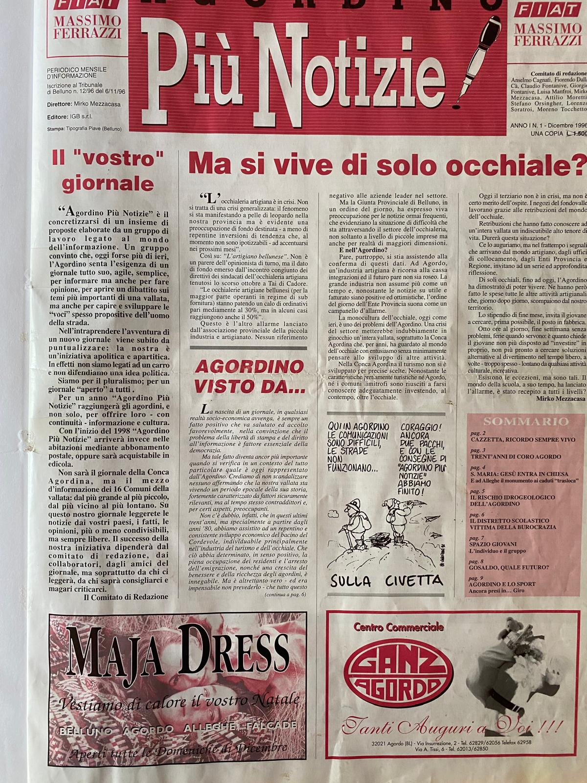 - COPERTINA PRIMO NUMERO AGORDINO PIU’ NOTIZIE. DICEMBRE 1996