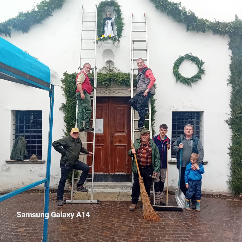 AGORDO Volontari al lavoro per preparare San Vincenzo. Nella foto: Silvia Zasso, Sandro Zasso, Riccardo Costantini, Matteo Da Ronch, Sandrino Da Ronch, Giuseppe Tancon e Roberto Chissalè.