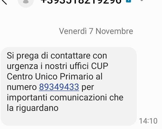 L’Ulss 1 Dolomiti mette in guardia i cittadini: sta circolando un sms che invita a richiamare un numero per ottenere informazioni sul Cup, ma si tratta di un messaggio falso. L’azienda sanitaria precisa che i suoi sms ufficiali hanno come mittente “InfoAulss1” e non numeri telefonici. L’invito è a non richiamare, non fornire dati personali e segnalare eventuali tentativi di truffa alla Polizia postale.