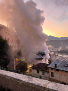 INCENDIO IN UNA PALAZZINA VICINO AL DUOMO DI BELLUNO: FIAMME VISIBILI DALLA PANORAMICA