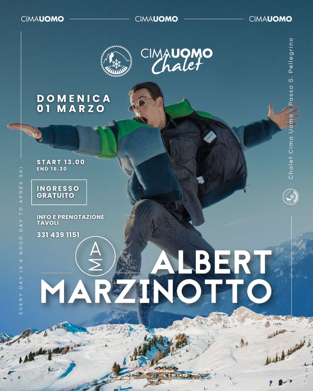 PASSO SAN PELLEGRINO Grande attesa per l’arrivo di Albert Marzinotto al CimaUomo Chalet di Passo San Pellegrino. Domenica 1° marzo, dalle 13.00 alle 16.30, il celebre DJ e performer animerà il locale in quota con un evento a ingresso gratuito, promettendo musica ed energia nel cuore delle Dolomiti innevate. L’appuntamento, organizzato nella suggestiva cornice del Cima Uomo Chalet, unisce divertimento e panorama mozzafiato, offrendo agli appassionati di sci e après-ski un’esperienza unica tra ritmo e montagna. Marzinotto, noto per il suo stile eclettico e coinvolgente, trasformerà il pomeriggio in una vera festa open air. Per informazioni e prenotazioni tavoli è disponibile il numero 331 439 1151. Un’occasione imperdibile per vivere una domenica diversa, tra musica, sole e alta quota.