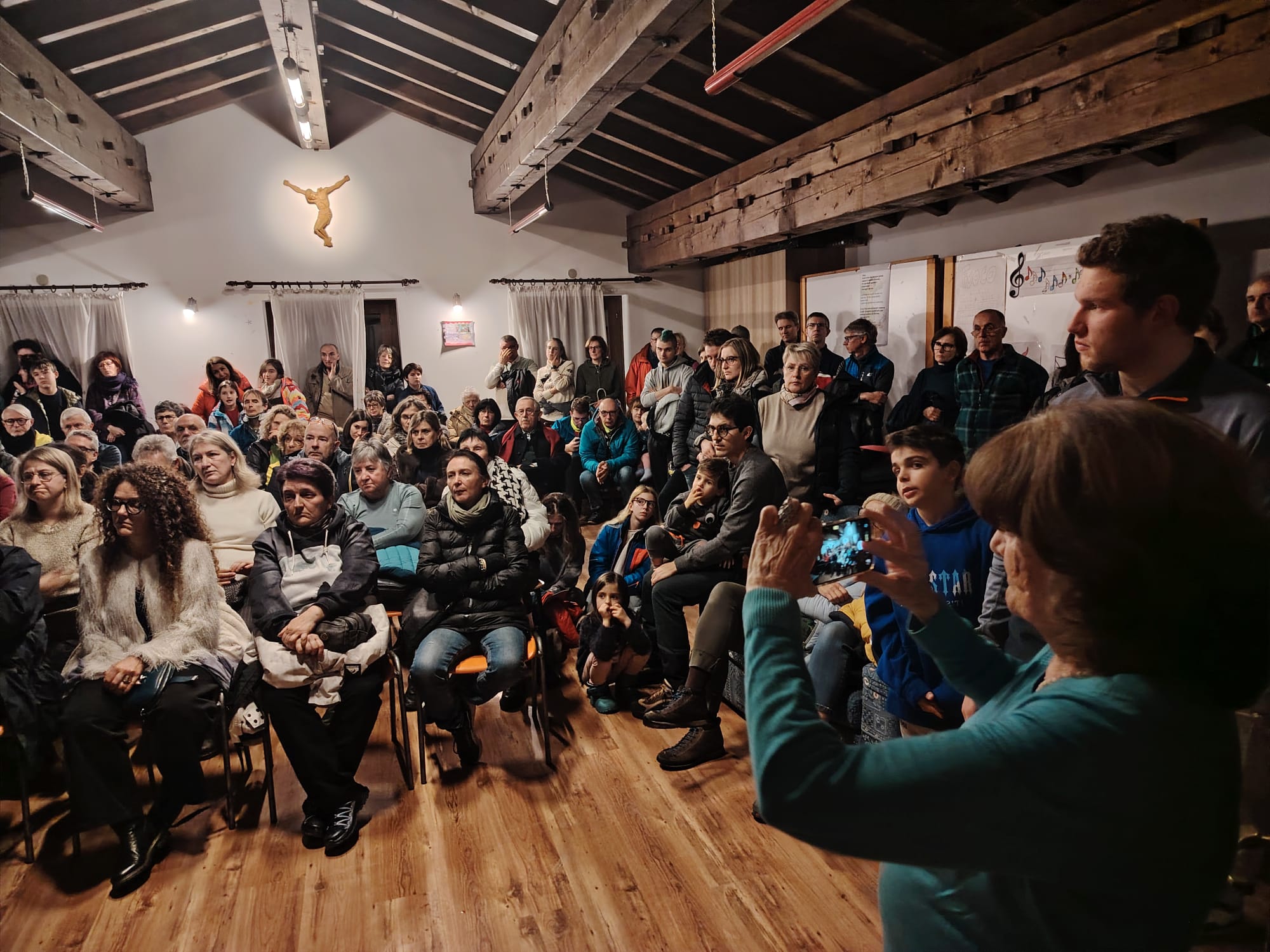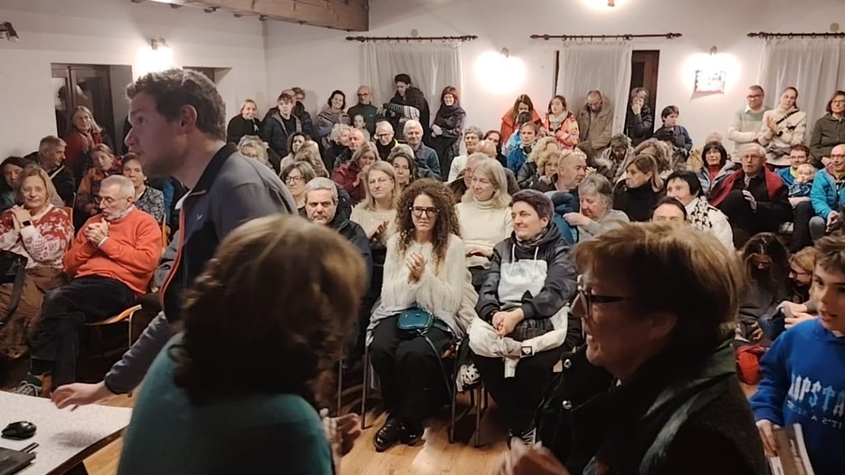 ALLEGHE/CAVIOLA DI FALCADE Nel fine settimana del 27 dicembre ad Alleghe e del 28 dicembre a Caviola, nel tardo pomeriggio, due appuntamenti culturali con l’esperta di aurore Ada Grilli, che ha spiegato quali sono i meccanismi che innescano questo meraviglioso fenomeno. A seguire Simone Prà, che ha mostrato al folto pubblico, le sue foto scattate in Norvegia nel viaggio organizzato dalla stessa Ada Grilli, dove vi hanno partecipato anche altri fotografi agordini. Ma la vera sorpresa è stata la presenza di un signore che arriva proprio da Tromso, attualmente in vacanza ad Alleghe, che ha mostrato sul pannello della foto scattata da Simone la zona dove abita. Trovata sui social la pubblicità dell’evento, si è molto stupito e incuriosito ed ha pensato che non poteva assolutamente mancare.