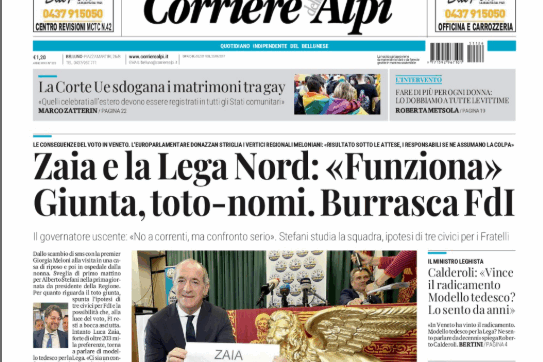 ***** In Veneto, dopo le elezioni regionali, a dominare la scena è Luca Zaia, che con oltre 203 mila preferenze firma un record nazionale e rilancia la proposta della “doppia Lega”. Intanto Alberto Stefani, nuovo presidente della Regione, si prepara alla prima grande prova del suo mandato: le Olimpiadi Milano Cortina 2026, per cui Confindustria…