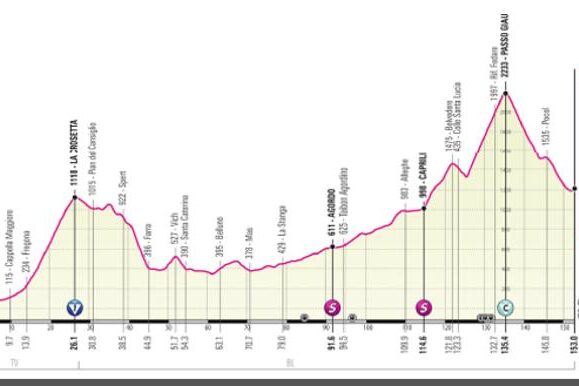 REDAZIONE La tappa Sacile – Cortina di oggi è stata ridotta da 212 a 155 km. Si farà la Crosetta, ma da Agordo la musica cambia: niente Fedaia, niente Pordoi. Ci si dirigerà direttamente verso il Passo Giau, del quale si affronterà anche la discesa verso Cortina d’Ampezzo. Il Passo Giau sarà la Cima Coppi…