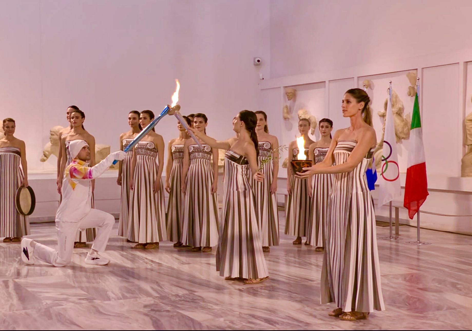 BELLUNO Belluno c’era. C’era davvero, quando ieri, 26 novembre, nel cuore pulsante della Grecia antica, tra marmi maestosi centrali di una scenografia unica e la pioggia sottile che scendeva dal cielo, è stata accesa la storica torcia dei Giochi Olimpici 2026. Un momento solenne, carico di significati, che ha visto anche la presenza di alcuni bellunesi nel pubblico, tra cui Rodolfo Laforgia, fiduciario provinciale del CONI Belluno e, da agosto, membro della squadra guidata da Simone Soccal, capo della delegazione provinciale del Comitato Olimpico Nazionale Italiano. La cerimonia si è svolta nel museo archeologico di Olimpia, di fronte alla maestosa statua in marmo della Nike di Peonio, scelta come scenografia del rito a causa delle condizioni meteo: le ultime giornate di pioggia non hanno infatti consentito l’accensione tramite lo specchio parabolico, come vorrebbe la tradizione del cerimoniale ufficiale, ma l’emozione non è comunque mancata. A interpretare la “grande sacerdotessa” è stata l’attrice Mary Mina, che ha simbolicamente acceso la fiamma prima di affidarla al primo tedoforo, il canottiere Petros Gkaidatzis, bronzo olimpico ai Giochi di Parigi 2024. A lui è stata consegnato anche un ramo d’ulivo, emblema universale di pace e fraternità, da sempre parte di questa cerimonia, ma simbolo ancor più potente, nel momento storico che stiamo attraversando. La torcia destinata a raggiungere il territorio italiano e, nel suo viaggio, anche Feltre, Belluno e Cortina, è stata definita “essenziale” per il suo design pulito e contemporaneo. Realizzata con una lega di alluminio e ottone riciclati, pesa 1.060 grammi e intende esaltare la purezza della fiamma e il suo forte valore simbolico. Profonda l’emozione di Laforgia, che ha vissuto il momento da testimone diretto: “Io c’ero e potrò raccontarlo ai miei nipoti. Nonostante il maltempo abbia spostato la cerimonia all’interno, è stata un’emozione unica. Eravamo all’esterno e abbiamo visto passare il primo tedoforo; eravamo prossimi anche al sesto e settimo. Vedere tutto così da vicino mi ha fatto sentire parte della storia. Da bellunese non ho potuto che emozionarmi ancor di più”. L’attesa ora si sposta sulle date che coinvolgeranno direttamente il territorio bellunese: