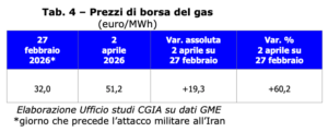 cento) (vedi Tab. 3), il secondo da 32 euro/MWh a 51,2 (+60,2 per cento) (vedi Tab. 4 e Graf. 2). Un’evoluzione che, inevitabilmente, si rifletterà sulle bollette, con prospettive tutt’altro che rassicuranti. In particolare per le famiglie più fragili economicamente e per le imprese più energivore e gasivore.
