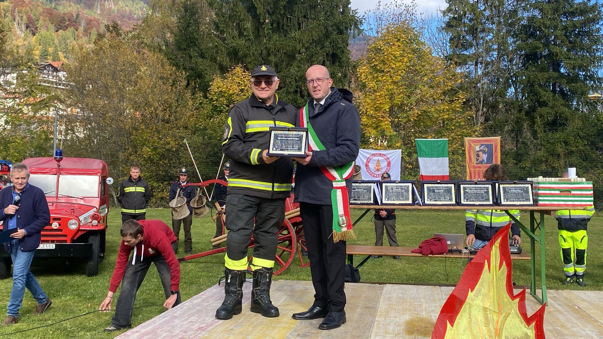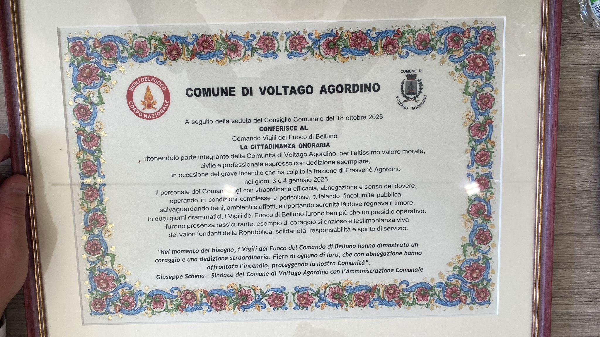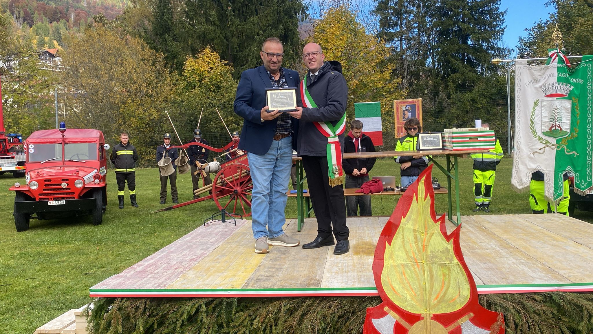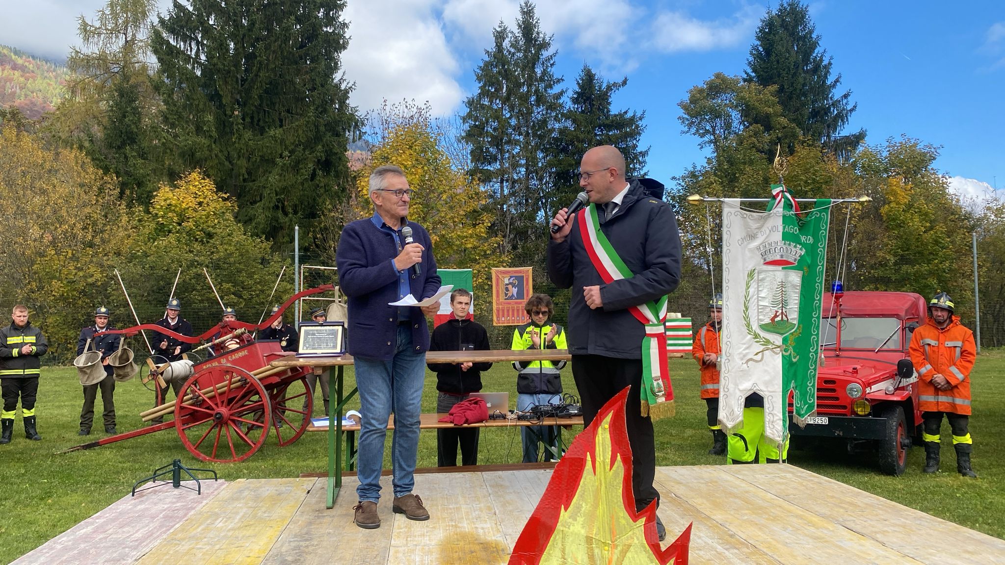 VOLTAGO Si terrà oggi la solenne cerimonia di conferimento della cittadinanza onoraria ai Vigili del Fuoco di Belluno, in segno di riconoscenza per l’eroico intervento durante il grave incendio del 3 e 4 gennaio scorsi. Il programma prevede lo scoprimento della targa commemorativa presso l’ex sede Pro Loco, ora presidio antincendio, alla presenza del Sindaco Giuseppe Schena e delle principali autorità civili, militari e religiose. Seguiranno la sfilata dei mezzi di soccorso, l’alzabandiera con l’inno nazionale e i ringraziamenti ufficiali ai distaccamenti, ai volontari e ai cittadini che contribuirono alle operazioni d’emergenza.