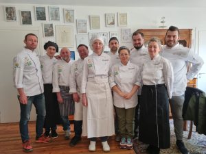 Tema generale per tutti i cuochi, divisi in 5 gruppi, è stato il Carnevale. Inizio con il Benvenuto della Cucina grazie alle Frittelle di patate “Foiole Da Ref” abbinate allo spumante brut Casamatta della Azienda agricola De March; antipasto Tagliere a Carnevale (ogni scherzo vale) sempre con vino spumante di De March. Orzotto Arlecchino per il primo piatto e vino Asta Solija della Canina Polesana, Secondo piatto il classico Coniglio Bellunese in agrodolce con crema di patate e vino Pavana 2020 della cantina Altor. A concludere la Sbrisolona di Noci con Zucca Mascherata e vino Solaris del Consorzio Viticoltori Alpago. Tutti prodotti bellunesi di cui andare orgogliosi. I Cuochi Contadini che hanno realizzato il pranzo sono: Matteo Monestier (Agr. La Busca) e Nella Cignotto (Agr. Pra della Fratta), Giovanna Giuffrida (Agr. Malga Ciauta) e Mauro De March (Agr. Cornolade), Janine Frison (Agr. San Siro) e Gianluca Girardi (Agr. Antica Pieve), Giancarlo Lira (Agr. El Crivel) e Marco Casagrande (Agr. Saettà), Gianluca Strappazzon) Agr. San Siro) e Marco Vuerich (Agr. Faverghera). Mani d’oro di tutti ni cuochi con menzione particolare per i nuovi Giancarlo Lira, Gianluca Strappazzon, Janine Frison e Mauro De March che subito si sono rapportati ad un corso molto impegnativo come quello Avanzato, ma alla fine di grandi soddisfazioni, che è spaziato su tantissime realtà produttive Bellunesi e pure su diverse aziende del Trevigiano. E tutto questo per rappresentare un turismo evoluto, un agriturismo rispettoso dell’ambiente e responsabile. Per considerare le nostre imprese agricole una risorsa preziosa, di qualità per tutti locali ed ospiti.