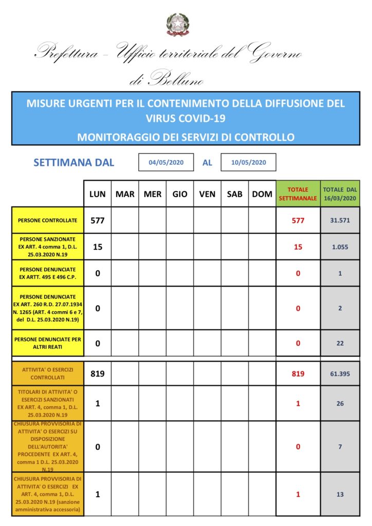 BELLUNO Primo giorno di “Fase 2” e subito 15 sanzioni inflitte dalle Forze dell’Ordine. Questo il dato che arriva dalla Prefettura di Belluno sui controlli per il contenimento Covid-19. 577 le persone controllate nella giornata di lunedì e 15 le contravvenzioni. Nel primo giorno della settimana i controlli hanno riguardato anche gli esercizi commerciali. 819 attività controllate, una sanzione ad un titolare e una chiusura provvisoria con sanzione amministrativa accessoria.
