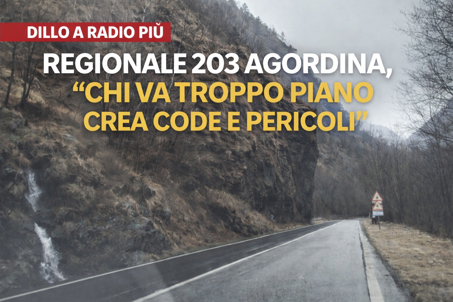 Arriva alla rubrica Dillo a Radio Più una segnalazione che riaccende il dibattito sulla viabilità lungo la regionale 203 Agordina. Chiara, che percorre spesso l’arteria, evidenzia una situazione frequente: veicoli che procedono a circa 60 chilometri orari in tratti dove il limite consentito è di 90. Una velocità ben al di sotto di quella prevista che, secondo la segnalazione, finirebbe per creare code anche di dieci mezzi, con poche possibilità di sorpasso sicuro vista la conformazione della strada.