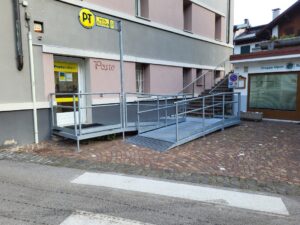 ROCCA PIETORE – Dopo l’esposto firmato da oltre quaranta residenti e pubblicato ieri da Radio Più, riguardante la pedana metallica installata davanti all’Ufficio Postale del capoluogo, arriva la risposta ufficiale di Poste Italiane. L’Azienda, con una nota datata 20 novembre 2025, precisa che la passerella è stata realizzata “nel pieno rispetto della normativa vigente”, nell’ambito di un più ampio piano nazionale dedicato all’eliminazione delle barriere architettoniche”.