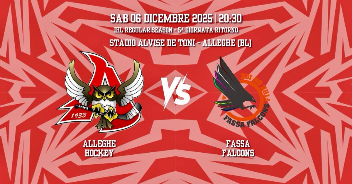 Sedicesima giornata (5ª del girone di ritorno) del campionato IHL di hockey su ghiaccio. Sabato 6 Dicembre alle 20:30 le Civette ospitano al “De Toni” di Alleghe i Fassa Falcons. Nell’ultima di campionato l’Alleghe ha clamorosamente sbancato 5-2 l’Acinque Ice Arena di Varese, regalandosi così il secondo posto in classifica. Gara nella quale le Civette sono state ciniche a capitalizzare gli errori avversari e sfoderare al contempo una solida prova difensiva, con in evidenza un superlativo goalie Mathias De Nardin. La gara è stata subito condotta dal Varese che ha creato le occasioni migliori, ma sono stati i Biancorossi a trasformare in rete la prima vera occasione con un colpo da bigliardo di Giacomo Alessio. Nella seconda frazione il Varese ha spinto alla ricerca del pareggio, subendo però il raddoppio dei Biancorossi con Francesco Soppelsa lesto sotto rete. Ai Mastini è servita prima una doppia superiorità numerica per accorciare le distanze e poi un power play, in apertura di terzo tempo, per pareggiare. Ma dopo meno di due minuti il golden boy alleghese Noè Fontanive, alla seconda rete in altrettante gare, ha riportato avanti le Civette con un gol sottomisura. A questo punto i Gialloneri hanno compiuto il massimo sforzo per rientrare in partita, sbattono però sul muro eretto dalla difesa agordina e dall’insuperabile Mathias De Nardin. Nel finale è salito in cattedra un grintoso ed infaticabile Diego Iori, che con una doppietta ha spento ogni velleità dei padroni di casa. Alla vigilia della sedicesima giornata l’Alleghe è secondo in classifica con 31 punti, dietro al Caldaro capolista e un punto davanti al Varese e tre dall’Appiano. Il Fassa arriva in riva al lago dopo la vittoria casalinga 3-2 ottenuta agli shootout contro il Valdifiemme. Fassani ed Agordini sono i migliori attacchi del torneo, rispettivamente con 67 e 68 reti all’attivo. Trentini che possono vantare anche il miglior goleador: l’ucraino Andrii Mikhnov con 17 reti e il miglior assist man: il finlandese Niklas Salo con 29 assist. Grande ex della gara sarà il goalie Gianni Scola, che ha lasciato ottimi ricordi in biancorosso dopo cinque stagioni sotto al Civetta. Trentini attualmente quinti in classifica con 24 punti a pari merito con il Valpellice, dietro all’Appiano a 28 e davanti all’Aosta a 22 punti. Sono solo tre i precedenti giocati in IHL tra Alleghe e Fassa. Il bilancio registra due successi delle Civette contro uno dei Falchi. Nella gara di andata a Canazei si sono imposti i Biancorossi 8-3.