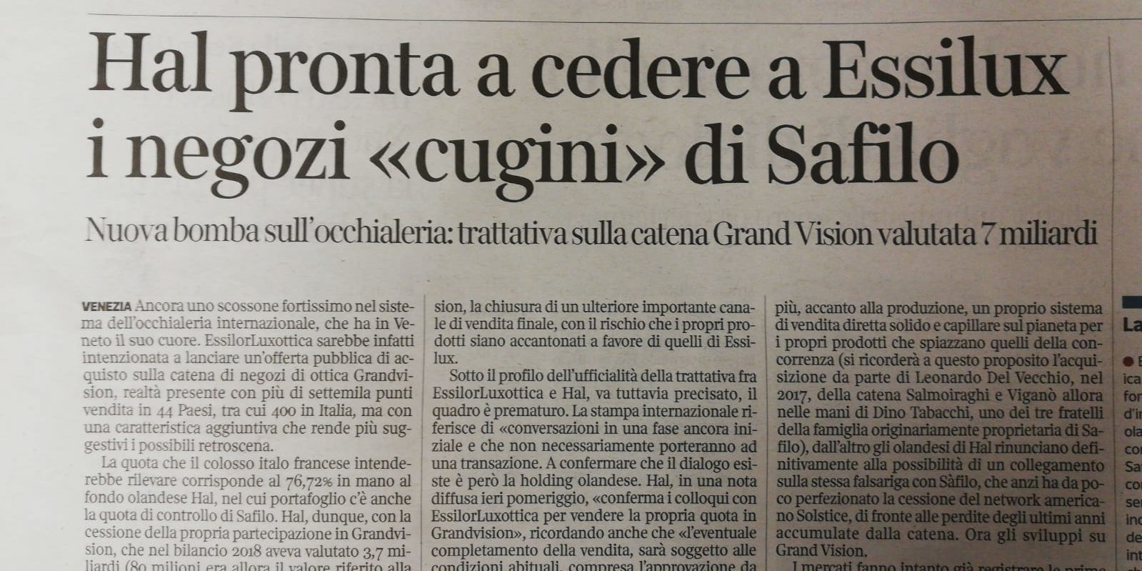 Charenton-le-Pont, Francia (17 luglio 2019) – EssilorLuxottica conferma i contatti in corso per l’acquisizione della partecipazione del 76,72% in GrandVision N.V detenuta da HAL Holding N.V. Nessun accordo è stato finora raggiunto e non vi è alcuna garanzia che le discussioni in corso portino ad un accordo. Inoltre, il perfezionamento dell’acquisizione sarà in ogni caso soggetto alle usuali condizioni sospensive, compresa l’approvazione da parte delle competenti autorità antitrust in varie giurisdizioni. Il prezzo di acquisto per azione indicativamente discusso tra le parti fino ad oggi è di 28,00 Euro per azione. I termini della possibile transazione, ivi compreso il prezzo, saranno soggetti a continue valutazioni e discussioni nelle prossime settimane e ad ulteriori verifiche da parte dei consigli di amministrazione delle società interessate.