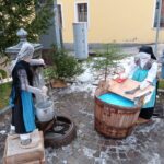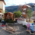 È un presepe che racconta la montagna, la sua gente e il lavoro di una volta quello allestito a Frassenè di Voltago Agordino, in piazza Don Stefano Gorzegno, davanti all’edificio delle ex scuole elementari. Un presepe delle Dolomiti che non si limita a rappresentare la Natività, ma mette in scena un intero mondo fatto di gesti antichi, vita quotidiana e identità locale. Le figure, curate nei minimi dettagli, animano la piazza come in un piccolo villaggio alpino: bambini che si tengono per mano, sciatori con attrezzi d’epoca, donne intente al bucato, uomini che segano la legna, trasportano tronchi con la slitta o lavorano all’interno delle casette in legno. Ogni scena è un frammento di storia, un omaggio alla semplicità e alla fatica della vita di montagna. Il contesto naturale fa il resto: le Dolomiti sullo sfondo, gli abeti, le luci discrete che accompagnano lo sguardo e valorizzano materiali poveri ma autentici. Il presepe diventa così un racconto collettivo, capace di parlare a grandi e piccoli, residenti e visitatori. Un presepe da guardare con calma, lasciandosi guidare dai dettagli, per riscoprire il valore del tempo, del lavoro e della comunità.
