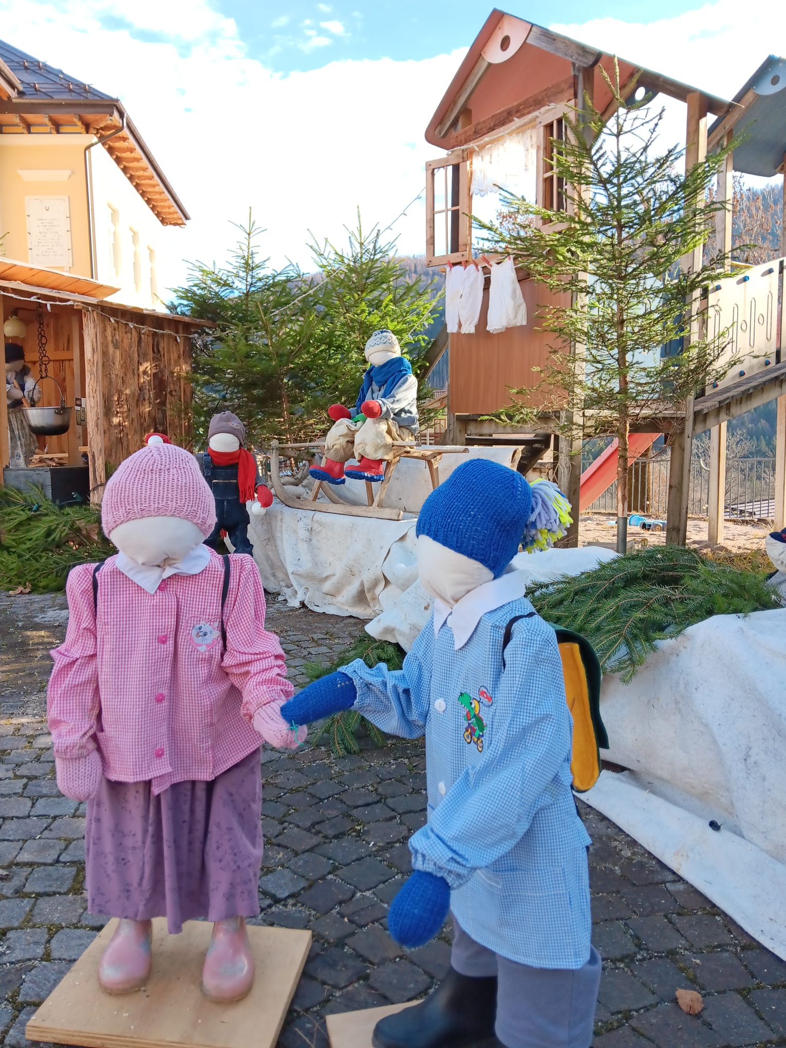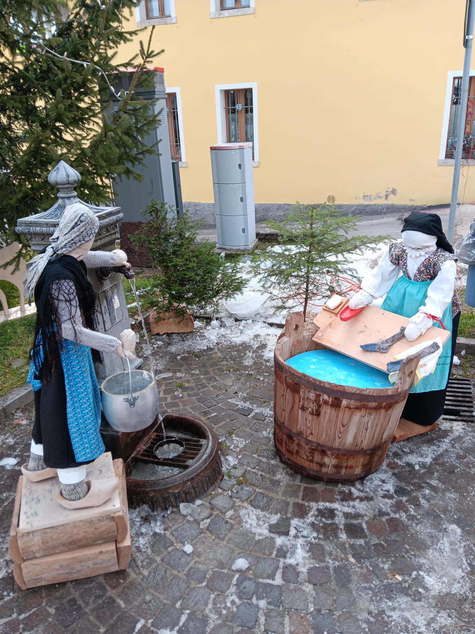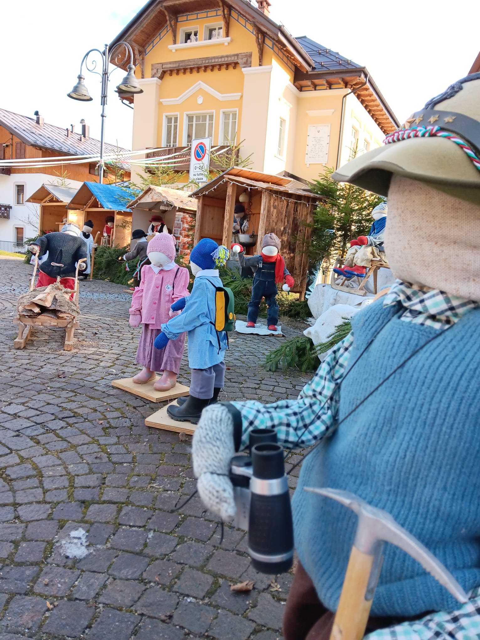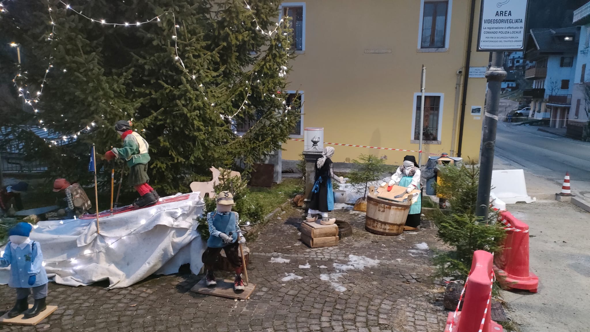 È un presepe che racconta la montagna, la sua gente e il lavoro di una volta quello allestito a Frassenè di Voltago Agordino, in piazza Don Stefano Gorzegno, davanti all’edificio delle ex scuole elementari. Un presepe delle Dolomiti che non si limita a rappresentare la Natività, ma mette in scena un intero mondo fatto di gesti antichi, vita quotidiana e identità locale. Le figure, curate nei minimi dettagli, animano la piazza come in un piccolo villaggio alpino: bambini che si tengono per mano, sciatori con attrezzi d’epoca, donne intente al bucato, uomini che segano la legna, trasportano tronchi con la slitta o lavorano all’interno delle casette in legno. Ogni scena è un frammento di storia, un omaggio alla semplicità e alla fatica della vita di montagna. Il contesto naturale fa il resto: le Dolomiti sullo sfondo, gli abeti, le luci discrete che accompagnano lo sguardo e valorizzano materiali poveri ma autentici. Il presepe diventa così un racconto collettivo, capace di parlare a grandi e piccoli, residenti e visitatori. Un presepe da guardare con calma, lasciandosi guidare dai dettagli, per riscoprire il valore del tempo, del lavoro e della comunità.