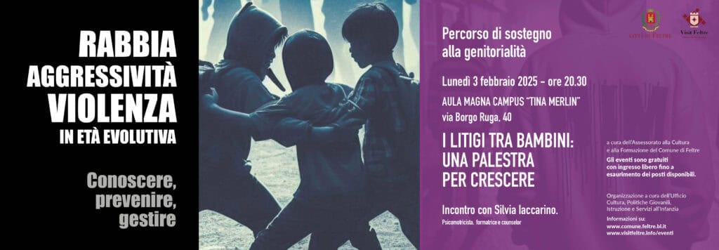 FELTRE Il Comune di Feltre prosegue il percorso di sostegno alla genitorialità con un incontro lunedì 3 febbraio 2025, alle 20.30, presso l’Aula Magna del Campus “Tina Merlin”. Il tema, “I litigi tra bambini: una palestra per crescere”, sarà trattato dalla psicomotricista Silvia Iaccarino. L’incontro aiuterà genitori ed educatori a comprendere come i conflitti infantili siano naturali e utili per lo sviluppo socio-emotivo. Iaccarino spiegherà come i litigi favoriscano competenze come gestione delle emozioni, empatia e negoziazione. L’iniziativa rientra in un progetto comunale volto a fornire strumenti alle famiglie. L’Assessore Flavia Colle sottolinea l’importanza di questi momenti di confronto per una genitorialità più consapevole. L’evento è gratuito e aperto a tutti.