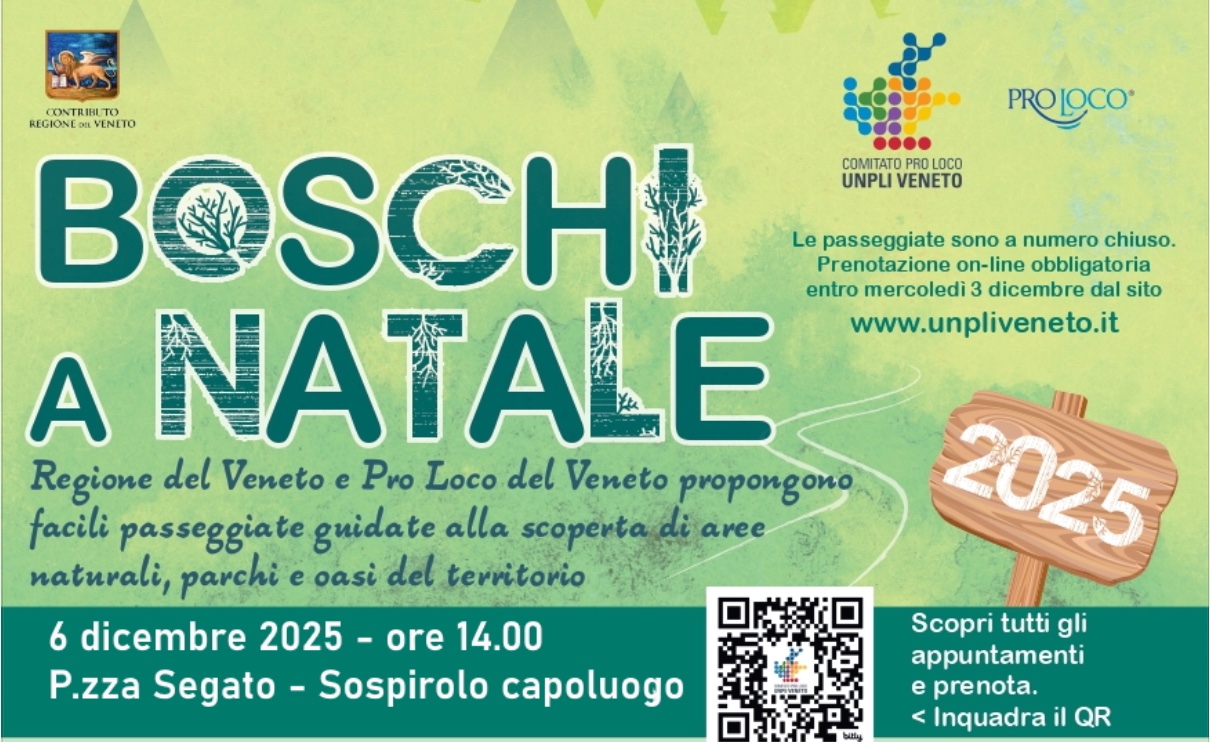 SOSPIROLO Sabato 6 dicembre a Sospirolo si terrà la passeggiata “Boschi a Natale 2025”, un percorso ad anello di 4 km tra pievi, panorami sulla Val Belluna, opere di land art e il mulino sonoro. Guidati da esperti naturalisti e narratori locali, i partecipanti scopriranno storia e natura del territorio. Domenica 7 dicembre, al Centro civico, il tradizionale concerto di Santa Barbara ricorderà i collaboratori scomparsi, tra cui Attilio Modolo. Il M° Diego De Pasqual proporrà “Diario di Viaggio”, un racconto musicale che unisce melodia, emozione e storia, offrendo al pubblico un’esperienza immersiva e toccante.
