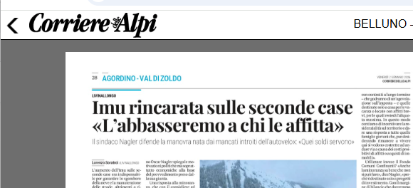 LIVINALLONGO: AUMENTO DELL’IMU SULLE SECONDE CASE, UNA DECISIONE INDISPENSABILE