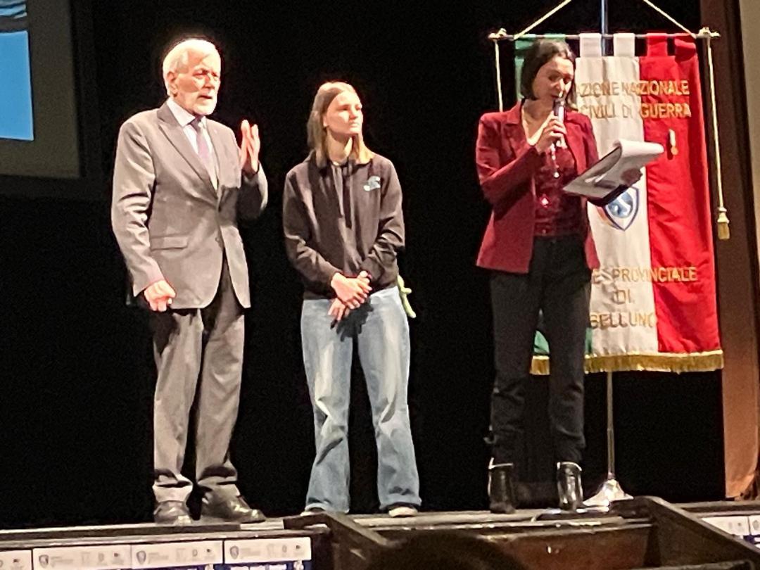 BELLUNO Le Scuole in Rete per un Mondo di Solidarietà e Pace e l’Associazione Nazionale Vittime Civili di Guerra (ANVCG) hanno promosso il 26 febbraio, al Teatro Dino Buzzati, lo spettacolo “La Scelta. E tu cosa avresti fatto?” di Marco Cortesi e Mara Moschini, dedicato al dramma della guerra nella ex Jugoslavia come simbolo dei conflitti attuali. L’iniziativa è proseguita con la premiazione del bando “Infanzia negata: i bambini vittime della guerra nel 1945 e oggi”, condotta dalla giornalista Luisa Venturin. Primo premio a Chiara Piccolin dell’IIS “Catullo”, classe 2BL del Liceo Artistico, autrice del video “Nuvole bianche cielo di sogni”. L’elaborato, dedicato alle bambine vittime di guerra dal 1945 a oggi, è stato proiettato davanti agli studenti presenti.