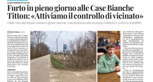 ALLERTA FURTI A FELTRE, COLPO IN PIENO GIORNO