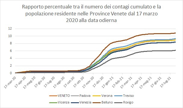 Questa fase si conferma poco aggressiva dal pnto di vista ospedaliero, merito del vaccino. Stiamo aggiornando il modello della regione che non ha centrato i numeri. Stiamo quindi facendo un nuovo modello. VACCINI In agenda ci sono 200mila posti libri prenotabili. 8 settembre 75% di vaccinati almeno con una dose, obiettivo arrivare a 82 % ad ottobre. Ci sarà un ritorno di fiamma. Fascia 12-19 vaccinati il 49%, 20-19 anni 69%; 30-39 63%, 40-49 68%; 50-59 77%; 60-69 86%; 70-79 91%, over80 99%. Chi lavora a scuola deve vaccinarsi. VARIANTE BETA va tenuta sotto osservazione. Il virus sta comunque circolando e il 98% dei contagiati sono per la variante Delta. Non escludo che in Veneto si arrivi all’immunità di gregge. FALSI VIDEO Zaia denuncia i falsi video in rete tagliati sulla frase “io non mi vaccino” che fa parte invece di una frase piu’ lunga che continuata con “finchè non sarà il mio turno”. GREEN PASS DAL 6 AGOSTO Si potrà ottenere anche facendo il tampone, non gratuitamente.