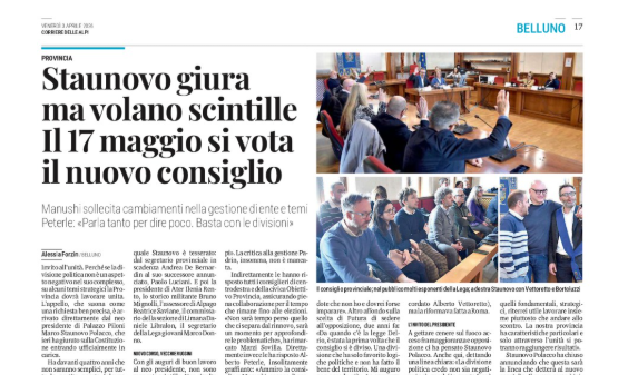 BELLUNO Prima seduta del consigIio provinciale guidato dal neo-presidente Marco Staunovo Polacco: confermate le deleghe ai consiglieri di maggioranza. Continua la polemica politica, ma il presidente chiede unità sui temi cruciali per il territorio.