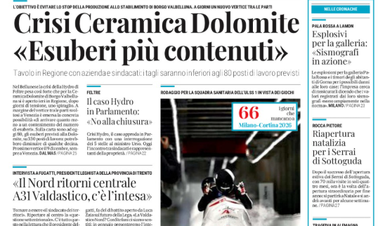 VENEZIA Si è svolto ieri in sede regionale un incontro dedicato al Piano Industriale di rilancio di Ceramica Dolomite di Borgo Valbelluna, approvato lo scorso 27 novembre dall’assemblea dei soci. La riunione, coordinata dall’Unità di crisi aziendali di Veneto Lavoro, ha visto la partecipazione della Direzione Lavoro regionale, dell’azienda con i suoi consulenti, di Confindustria Belluno-Dolomiti e delle organizzazioni sindacali Fim-Cisl, Fiom-Cgil e Uilm-Uil con i rappresentanti dei lavoratori. “Dopo le turbolenze dei giorni scorsi – ha dichiarato l’assessore regionale al lavoro Valeria Mantovan – si è riaperta una fase di confronto tra azienda e sindacati per risolvere le questioni ancora aperte e favorire un accordo sulle azioni e strumenti a supporto della riorganizzazione.” L’azienda ha confermato l’invio domani della versione completa del Piano alle Parti e si è dichiarata disponibile a ulteriori incontri tecnici, con il prossimo appuntamento fissato per martedì 9 dicembre.