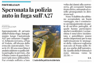 INCIDENTI STRADALI A LONGARONE E LIMANA