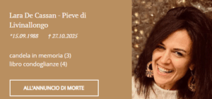 LIVINALLONGO L’intera comunità di Livinallongo è unita nel dolore per la scomparsa di Lara De Cassan, 37 anni, ricordata per il suo sorriso, la dolcezza e la semplicità con cui sapeva farsi voler bene. Una presenza luminosa e discreta, capace di lasciare un segno profondo in chi l’ha conosciuta. Il funerale sarà celebrato nella chiesa parrocchiale di Pieve di Livinallongo, dove familiari, amici e concittadini potranno darle l’ultimo saluto. Il suo corpo farà rientro in Italia nei prossimi giorni. Sul sito dell’impresa funebre è già comparsa l’epigrafe ufficiale, con la possibilità di accendere una candela virtuale o lasciare un messaggio di cordoglio. Lara resterà nel ricordo di tutti come una giovane donna autentica, amante delle sue montagne e della vita, e il suo spirito continuerà a vivere nel cuore della comunità che ora la accompagna con un commosso abbraccio nel suo ultimo viaggio.