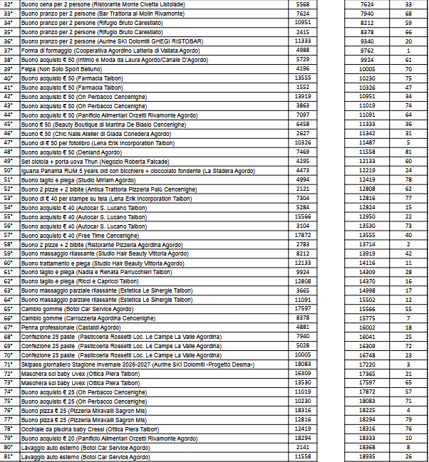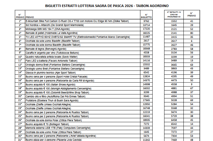 I BIGLIETTI VINCENTI DELLA LOTTERIA DELLA SAGRA DE PASCA