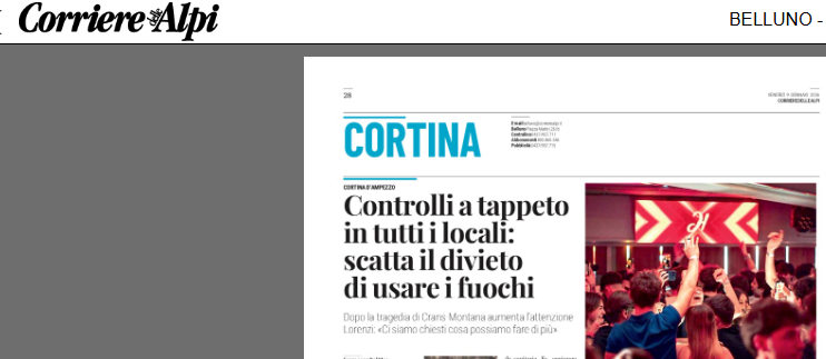 DIVIETO IMMEDIATO DI FIAMME LIBERE E ARTICOLI PIROTECNICI NEI LOCALI PUBBLICI A CORTINA