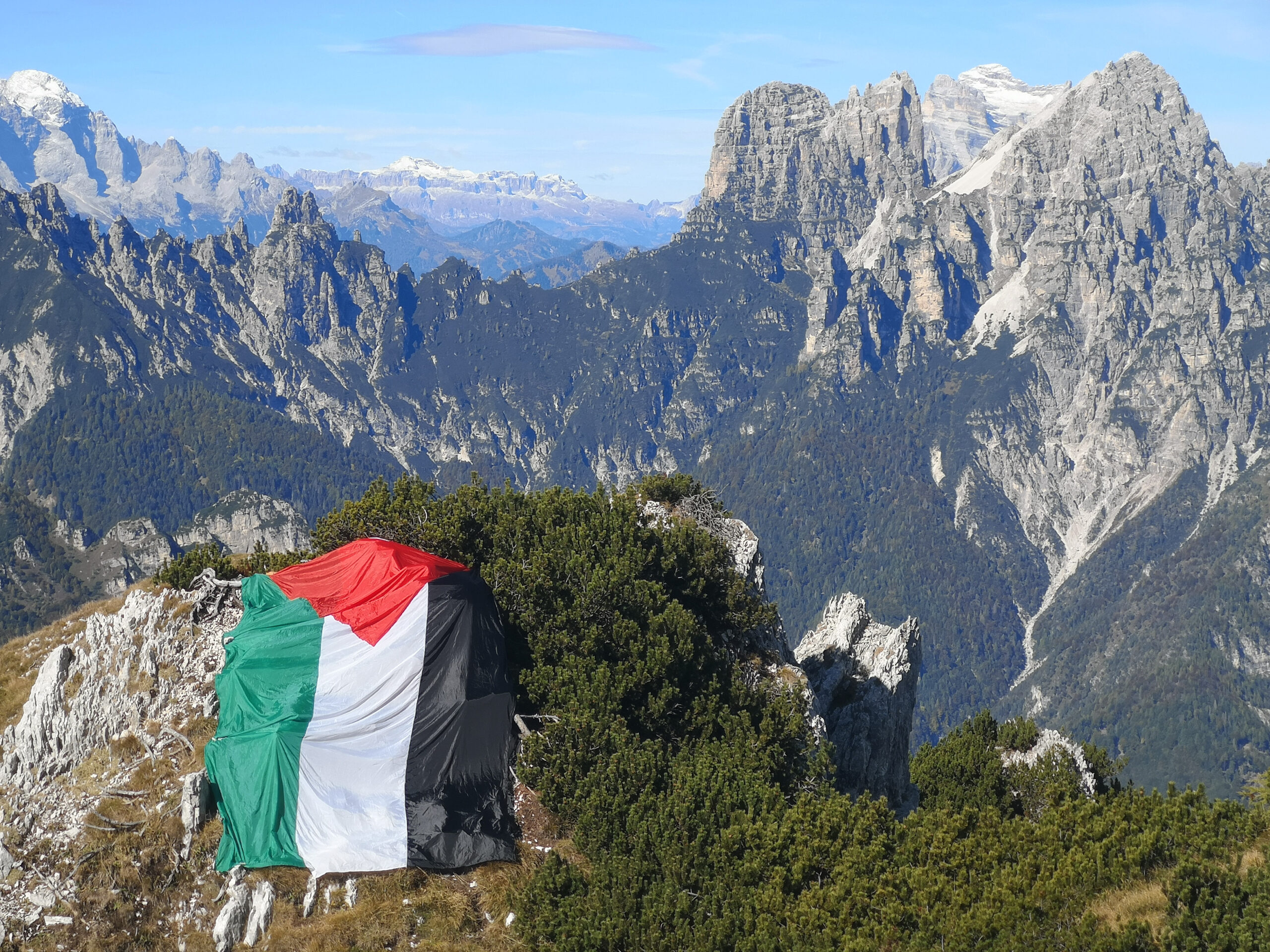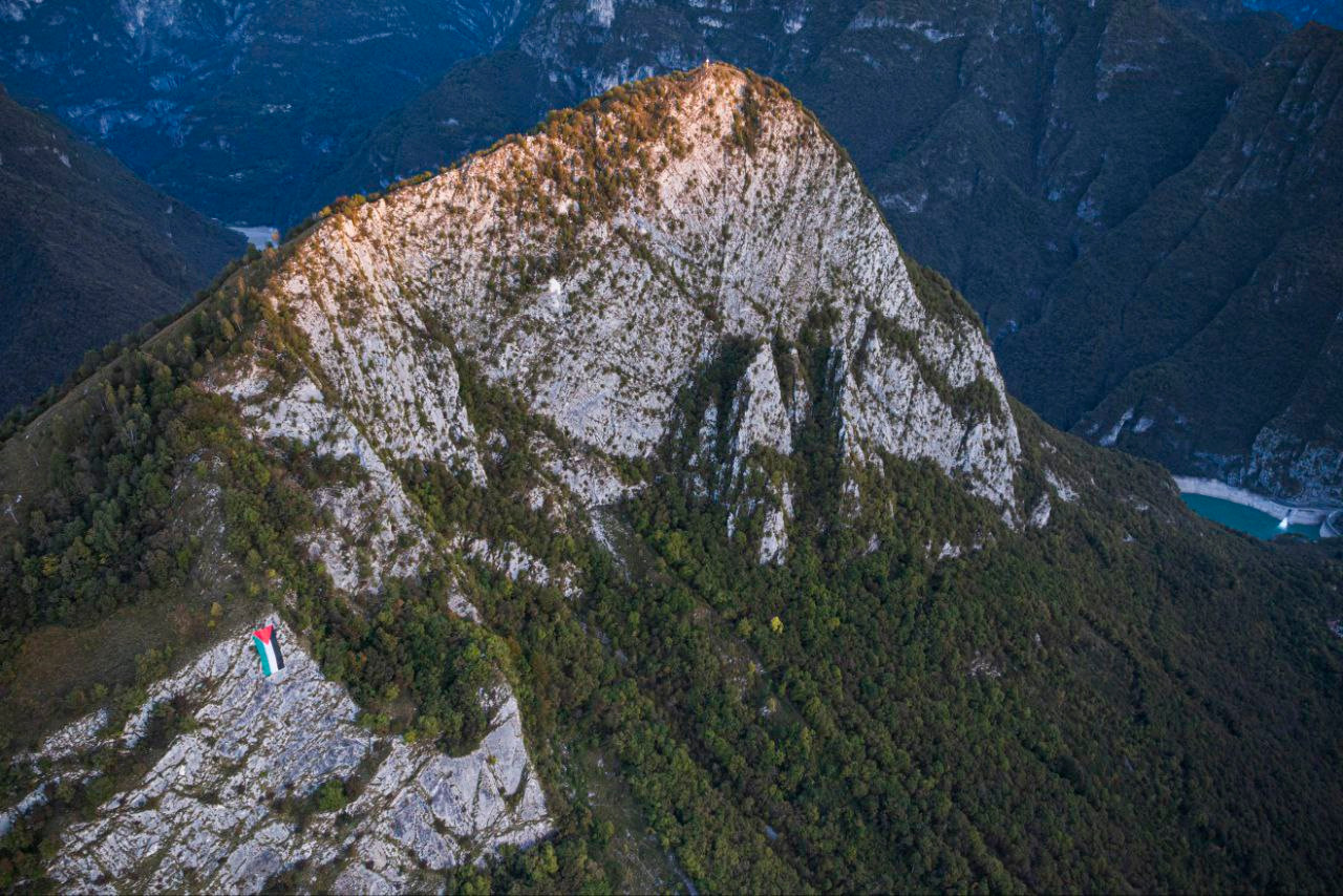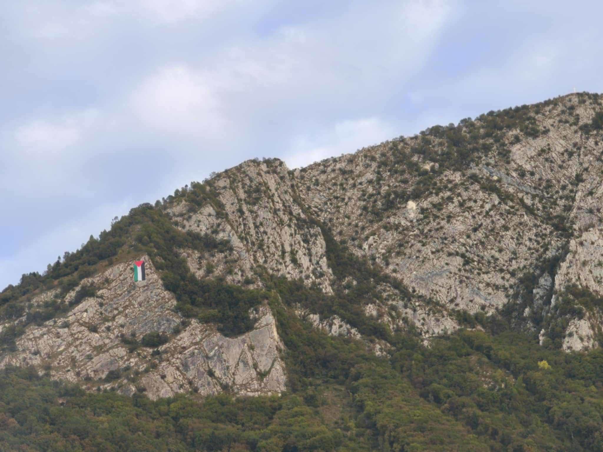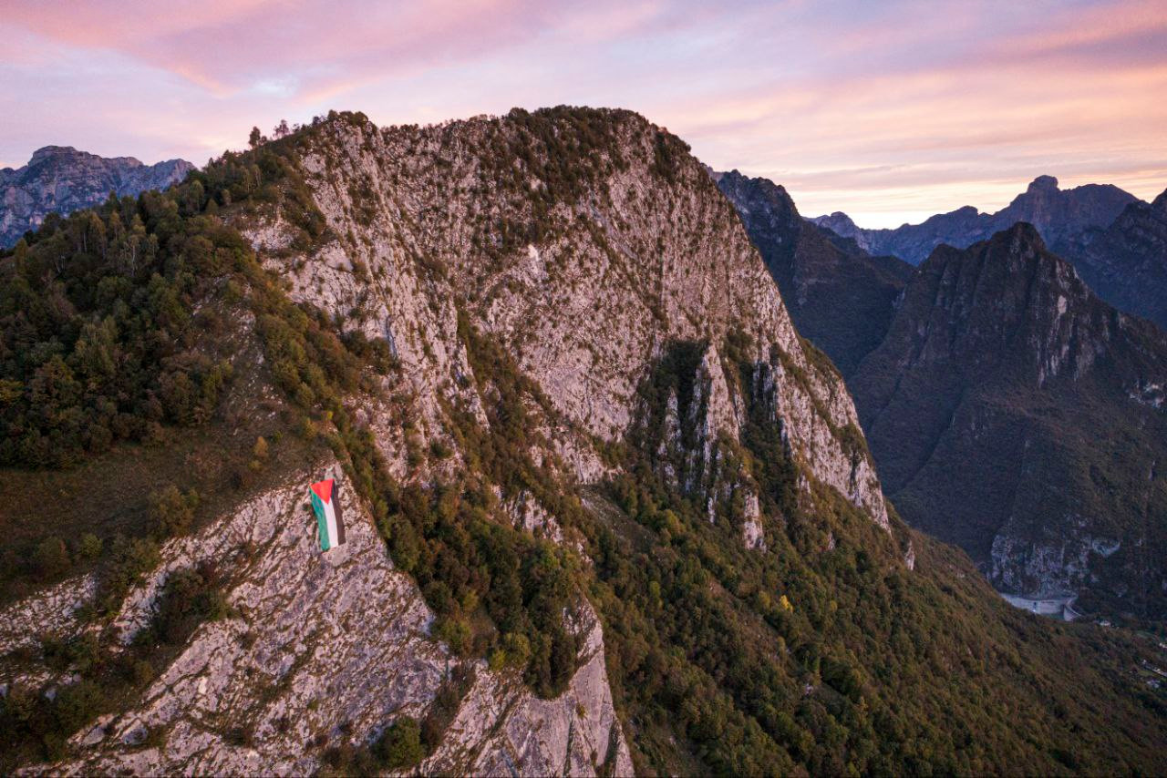 SOSPIROLO Un grande drappo con i colori della Palestina è comparso sulla parete del Monte Sperone (1.262 m), la cima che domina Sospirolo e gran parte della Valbelluna. Ben visibile anche a distanza, il vessillo è stato fissato lungo la parete rocciosa esposta al sole, trasformando il versante dei Monti del Sole in un messaggio di pace. Il Monte Sperone, noto per il suo profilo inconfondibile e la scarpata verticale che si staglia sopra l’abitato, torna così al centro dell’attenzione per un gesto simbolico che invita alla riflessione sul conflitto in Medio Oriente. L’iniziativa, immortalata da numerose foto, ha già suscitato commenti e condivisioni tra cittadini e appassionati di montagna. Un segno di solidarietà che, sospeso tra cielo e roccia, parla alla coscienza collettiva e rinnova dal cuore delle Dolomiti un messaggio universale: pace, rispetto e umanità per tutti i popoli.