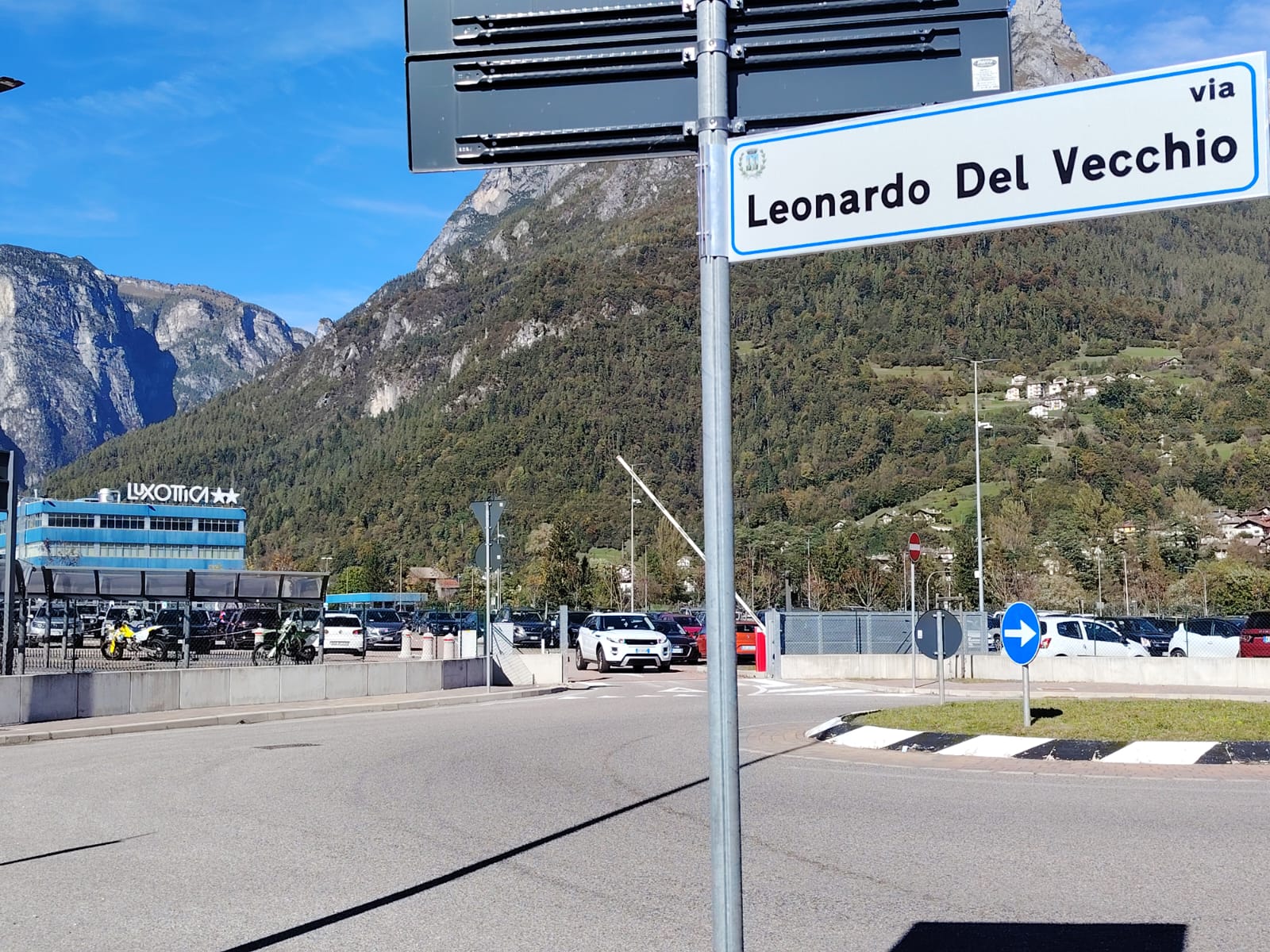 AGORDO 9 ottobre 2025, una data importante per la provincia di Belluno, chiamata anche la giornata della memoria, ma in questo caso non ci troviamo nella zona del longarone se, siamo nella zona industriale di Agordo. Anche qui si parla di memoria con l’ex via Valcozzena intitolata a Leonardo Del Vecchio. Ecco il nuovo cartello comparso qualche giorno fa, che indica la via di colui che cambiò l’economia locale e che rimarrà sempre nella storia dell’imprenditoria italiana come un grande luminare.