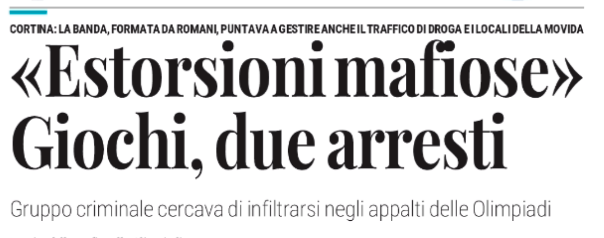 CORTINA I Carabinieri della Compagnia di Cortina d’Ampezzo, con il supporto dei Nuclei Investigativi di Belluno e Roma e sotto il coordinamento della Procura di Venezia, hanno eseguito un’operazione che ha portato all’arresto di tre persone, accusate di estorsione aggravata dal metodo mafioso. L’operazione, denominata “Reset”, rappresenta l’esito di un’indagine avviata nel giugno 2024 dalla Direzione Distrettuale Antimafia di Venezia. Secondo quanto emerso, due fratelli provenienti dalla Capitale, con precedenti e legami con la frangia degli “Irriducibili” della S.S. Lazio e con ambienti criminali riconducibili a Fabrizio Piscitelli, detto “Diabolik”, avrebbero imposto la propria influenza su Cortina d’Ampezzo, in particolare sul traffico di stupefacenti e sulla gestione di locali della movida. Gli indagati, insieme a un terzo complice, avrebbero utilizzato intimidazioni e violenze per ottenere il controllo di spaccio, eventi e appalti legati ai lavori per le Olimpiadi Invernali “Milano-Cortina 2026”. Tra gli episodi contestati figurano pestaggi, minacce a imprenditori locali e una tentata estorsione ai danni di un componente della Giunta comunale di Cortina. Le indagini, durate oltre un anno, sono state condotte con intercettazioni, pedinamenti e testimonianze di vittime e cittadini. La Procura invita chiunque abbia informazioni a collaborare con le autorità. Il procedimento è ancora in corso e la colpevolezza degli indagati dovrà essere accertata con sentenza definitiva.