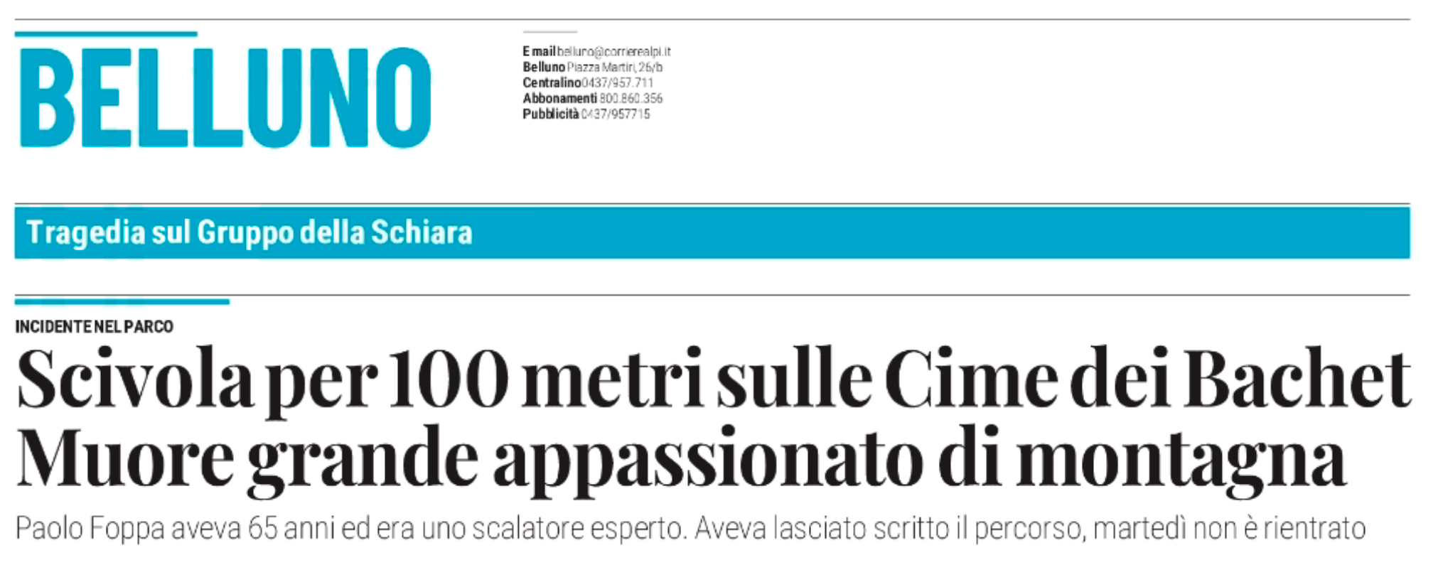 LONGARONE Paolo Foppa, 65 anni, ex dipendente Enel e appassionato di montagna selvaggia, ha perso la vita durante una delle sue escursioni nel Parco nazionale Dolomiti Bellunesi. L’uomo era partito in solitaria da Val del Grisol, seguendo uno dei percorsi abituali tra Pian de Fontana e il Pramperet. La famiglia, preoccupata per il silenzio del telefono, ha lanciato l’allarme martedì sera. Immediatamente sono scattate le ricerche con squadre del Soccorso Alpino, Guardia di Finanza, Carabinieri e Vigili del Fuoco, supportate da droni e Imsi Catcher per localizzare l’ultima posizione agganciata dal cellulare. Alle prime luci dell’alba, l’elicottero della Guardia di Finanza ha individuato il corpo di Paolo a 1.900 metri di quota, precipitato per circa cento metri in un canalone delle Cime dei Bachet. La salma è stata recuperata e trasportata al campo base di Longarone.