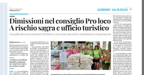 QUATTRO DIMISSIONI NELLA PRO LOCO DI AGORDO ALLE 10.30 SU RADIOPIU LO SPECIALE CON GIANNI SANTOMASO NELLA RASSEGNA STAMPA DA L’AMICO DEL POPOLO. OSPITE ADELE DE GREGORI