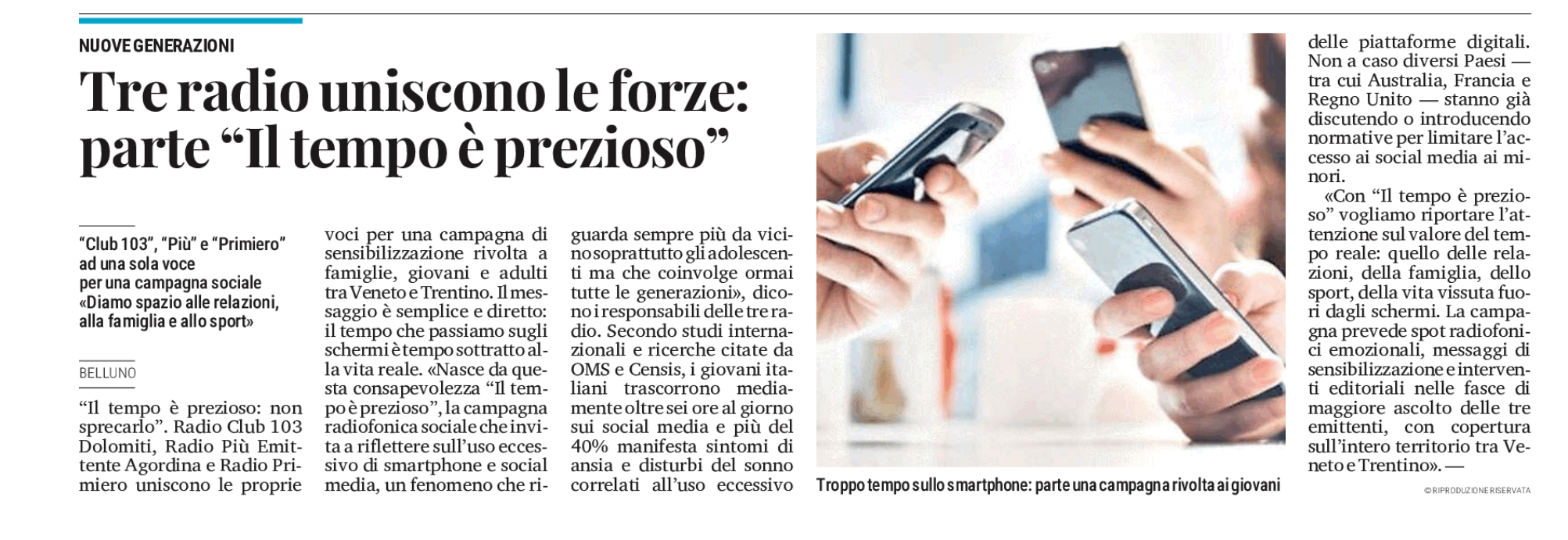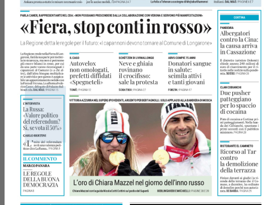 DAL CORRIERE DELLE ALPI – SINTESI –