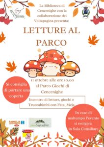 CENCENIGHE Domani alle 10, il Parco Giochi di Cencenighe si trasformerà in un angolo di fantasia e divertimento per i bambini e le famiglie grazie all’iniziativa “Letture al Parco”, promossa dalla Biblioteca di Cencenighe in collaborazione con il gruppo dei Voltapagina. L’incontro proporrà letture animate, giochi e un colorato truccabimbi curato da Fata_Meja, per regalare ai più piccoli una mattinata all’insegna della creatività e della condivisione all’aria aperta. Gli organizzatori consigliano ai partecipanti di portare una coperta, per godersi in comodità le storie tra i colori dell’autunno. In caso di maltempo, l’evento si terrà nella Sala Consiliare del Comune di Cencenighe, così da permettere a tutti di partecipare comunque alla giornata.