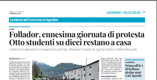 Il comitato genitori dell’Istituto Follador di Agordo esprime gratitudine verso gli studenti, definiti un esempio di maturità, rispetto e coraggio nelle difficili giornate di protesta.