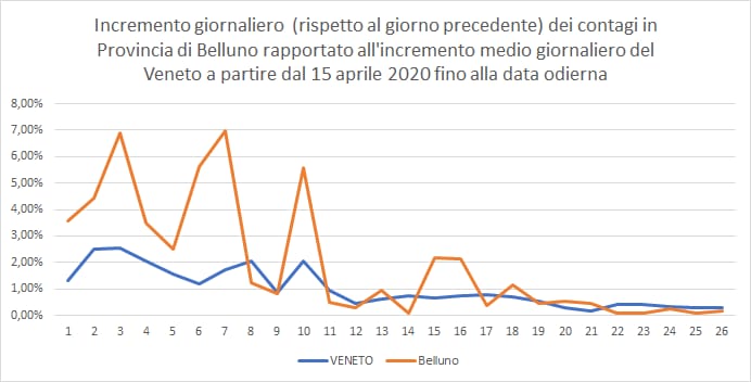 Incremento di positivi tra i più bassi del Veneto oggi in Provincia, Belluno segna comunque il rapporto contagi/popolazione più alto in Regione.