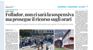 AGORDO Alla seconda udienza davanti al TAR di Venezia i legali Andrea Rui e Livio Viel hanno dichiarato superata l’esigenza cautelare, dopo i ritocchi all’orario introdotti dal dirigente scolastico Claudio Magalini. Pur non riportando la situazione al quadro precedente, tali modifiche hanno portato ad abbandonare la parte cautelare del ricorso. Resta in discussione il merito: stabilire se il dirigente possa modificare autonomamente gli orari senza consultare gli organi scolastici.