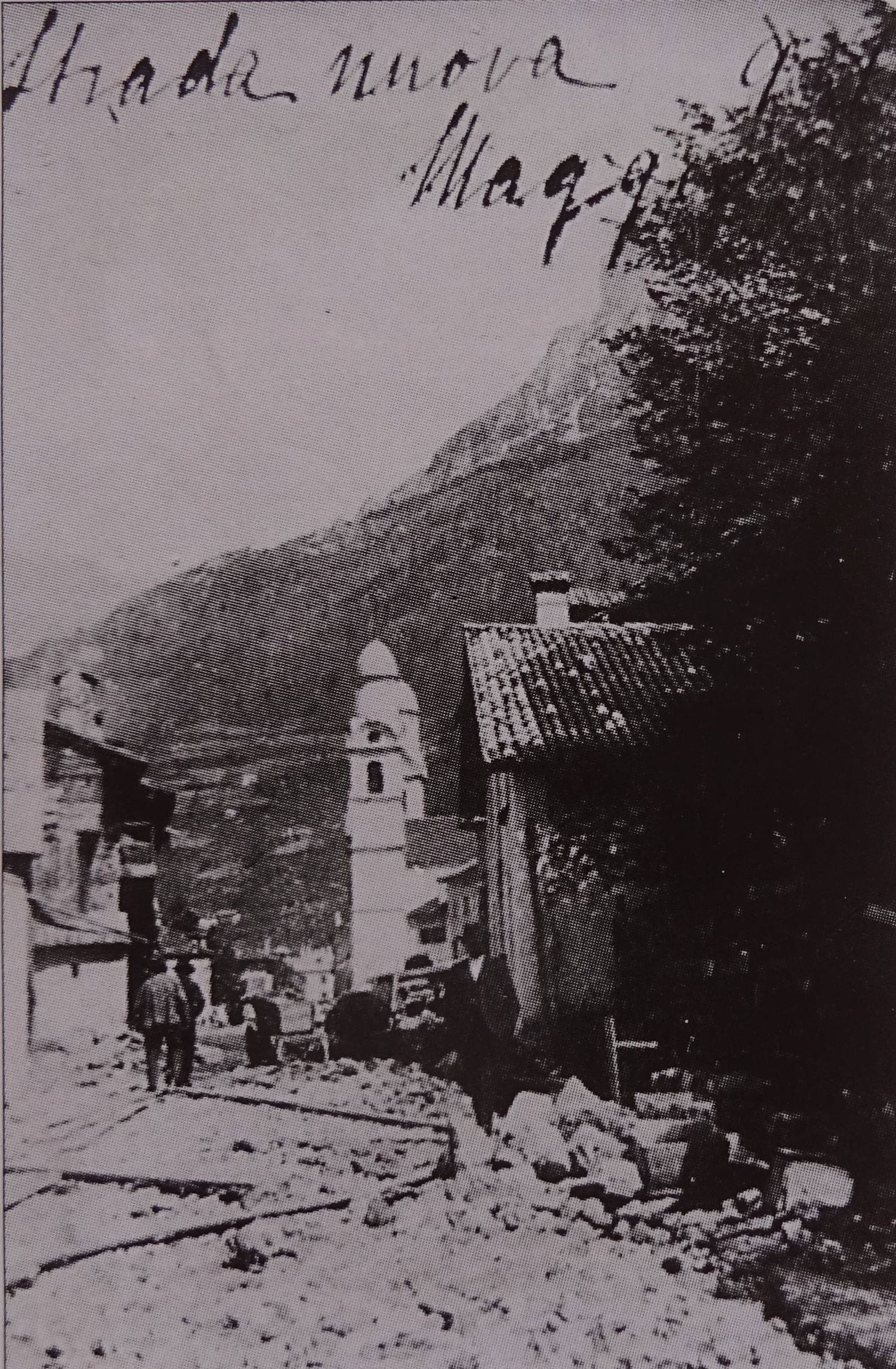 NELLE FOTO (riproduzioni da “Echi di Agordo”): il logo della rubrica di Bernardi “Spigolando in archivio”; si demolisce la chiesa di San Pietro ad Agordo; fu attivato un piccolo aeroporto a Valcozzena; ed una Decauville, ferrovia a scartamento ridotto; maggio 1916 la nuova via Cesare Battisti aperta con la demolizione della chiesa di San Pietro; celebrazione della messa per militari, medici, infermieri; l’ospedale da campo attivato davanti al Municipio di Agordo.