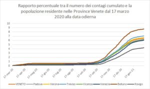 E mentre L’Italia si sposta di nuovo verso l’arancione, compreso il Trentino, il Veneto rimane in zona gialla, fino al 25 febbraio divieto di spostarsi tra le regioni, la stagione dello sci non partirà nemmeno mercoledi contrariamente a quanto annunciato e auspicato due giorni fa. Anche il Presidente della Regione che ieri aveva annunciato l’ordinanza alla fine ha tirato le mani indietro rinviando ogni decisione. Gli impianti non apriranno la prossima settimana, forse il 22 quando chiuderà il Mondiale di Cortina. Vaccini: il Veneto sta trattando per acquistare 4 milioni di dosi per una spesa di almeno 40 milioni. Zaia: «Non abbiamo inseguito i faccendieri, alla Regione sono pervenute numerose offerte, in gran parte accantonate perché non consone, e il confronto si è ristretto a un gruppetto di intermediari credibili che include professionisti italiani. È stata chiesta loro una proposta contrattuale scritta». I numeri di ieri: positivi scendono da 25.618 a 24.754 (-864) le degenze ospedaliere contano 79 unità in meno, i pazienti dell’area medica segnano – 63 (966) e quelle in terapia intensiva -16, (119). I decessi dall’inizio della pandemia ora sono 9.487.
