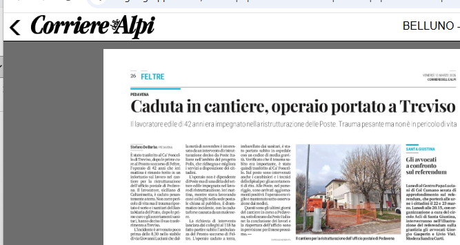 DAL CORRIERE DELLE ALPI – SINTESI