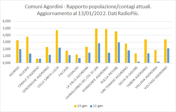 AGORDO 135 (+20) ROCCA PIETORE 54 (-1) TAIBON 59 (+1) CANALE D’AGORDO 20 (0) ALLEGHE 45 (+3) VOLTAGO 29 (+11) FALCADE 37 (+4) LIVINALLONGO 64 (+27) CENCENIGHE 29 (+5) VALLADA 9 LA VALLE 23 (-2) RIVAMONTE 30 () SELVA DI CADORE 8 (+1) SAN TOMASO 17 () COLLE SANTA LUCIA 17 (+4) GOSALDO 7 (+3)