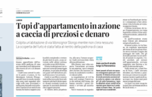 FURTO IN ABITAZIONE, LADRI IN AZIONE DURANTE L’ASSENZA DELLA PROPRIETARIA