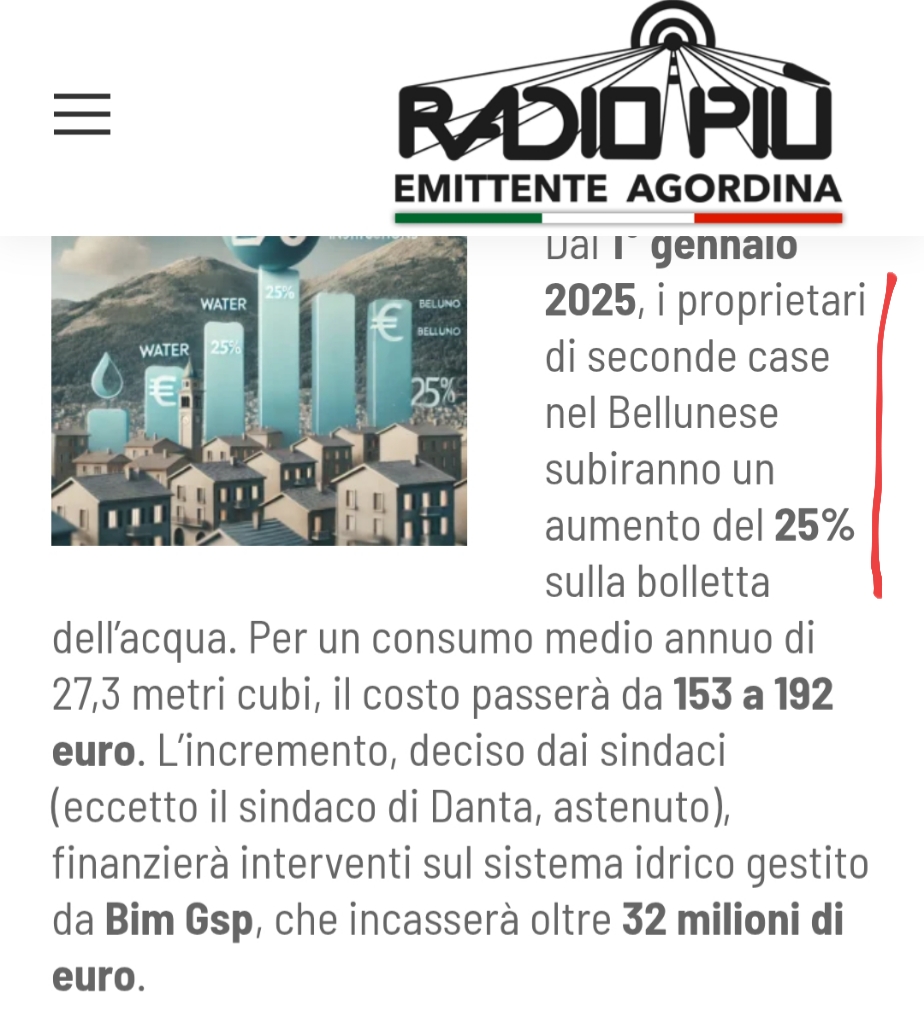 TAIBON Servizi Integrati Bellunesi comunica che, per lavori programmati alla rete idrica comunale, oggi dalle ore 8:30 alle 17:00 sarà sospesa l’erogazione dell’acqua a Taibon Agordino nelle vie Al Forte, Lagunal, Pont di Peden e Brustolon. Il personale opererà per ridurre al minimo i disagi. Si invita a organizzarsi preventivamente e a limitare i consumi.