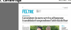 FELTRE Un bar di Feltre è stato sospeso dai Carabinieri del NIL di Belluno dopo aver scoperto un lavoratore “in nero”, privo di qualsiasi copertura assicurativa e previdenziale, intento a servire la clientela. L’intervento rientra in un’ampia attività ispettiva condotta dal NIL, con il supporto dell’Arma Territoriale, volta a verificare il rispetto delle norme sul lavoro e sulla sicurezza. L’operazione, basata su un’analisi info-operativa approfondita, ha interessato l’intera provincia, con particolare attenzione a pubblici esercizi, edilizia e agricoltura, coinvolgendo comuni come Alpago, Belluno, Livinallongo del Col di Lana, Limana, Pieve di Cadore, Pedavena, Tambre, Soverzene, Vigo di Cadore e Santo Stefano di Cadore. Complessivamente sono state riscontrate irregolarità in 14 aziende: quattro agricole, un cantiere edile, otto pubblici esercizi e un esercizio commerciale. Le violazioni riguardano formazione mancante, sorveglianza sanitaria assente, documenti di sicurezza non aggiornati e attrezzature non conformi, comprese impalcature insufficienti. L’attività ha portato a sanzioni e ammende superiori a 170 mila euro, confermando l’impegno dei Carabinieri nel contrasto al lavoro irregolare e nella tutela della sicurezza dei lavoratori.