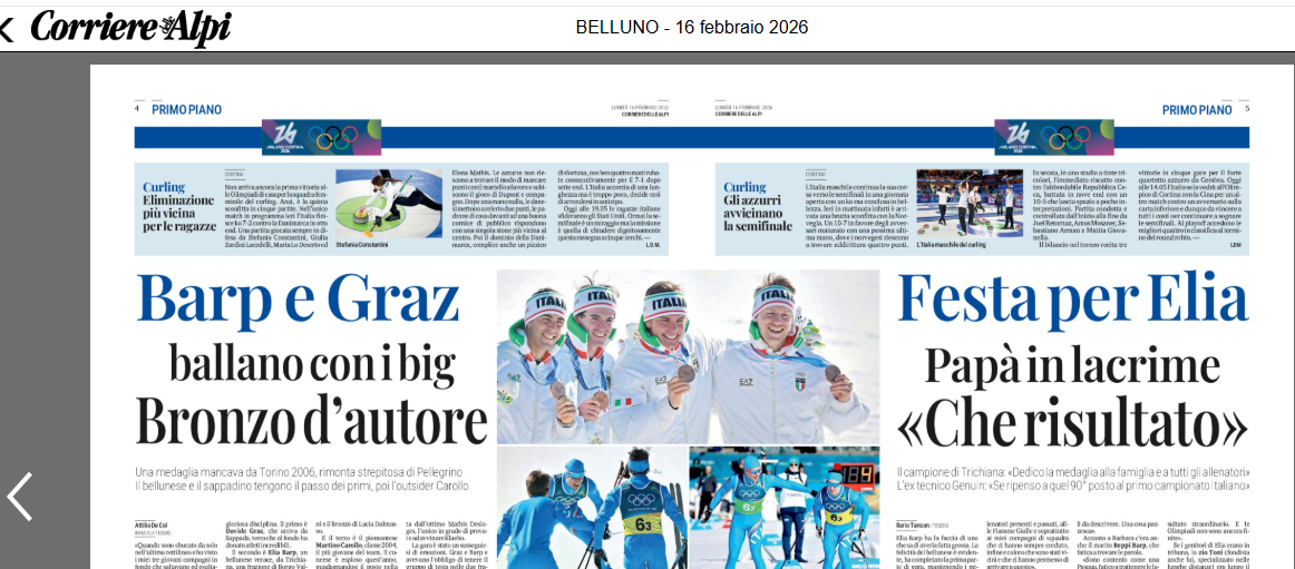 REDAZIONE Elia Barp ha vissuto uno dei momenti più emozionanti delle Olimpiadi Invernali Milano-Cortina 2026: il giovane fondista falcadino ha contribuito alla conquista della medaglia di bronzo nella staffetta maschile 4×7,5 km di sci di fondo. Insieme a Davide Graz, Martino Carollo e al veterano Federico Pellegrino, Barp ha spinto la squadra azzurra sul podio, chiudendo alle spalle di Norvegia e Francia e regalando all’Italia una storica medaglia nello sci di fondo, la prima dopo vent’anni. Classe 2002 e originario di Belluno, Barp conferma così il suo talento internazionale, firmando un risultato di grande rilievo olimpico.